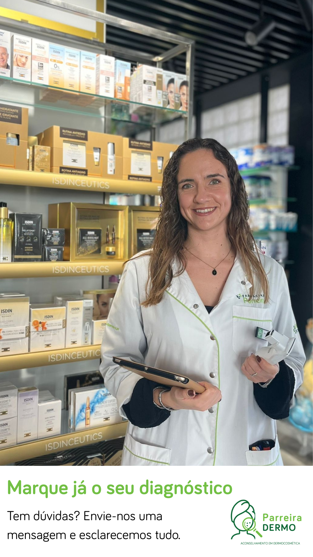 Nas Farmácias Parreira, pode contar com o serviço Parreira Dermo, um serviço especializado de diagnóstico e aconselhamento em dermofarmácia. Através de um equipamento de diagnóstico específico, a equipa farmacêutica avalia vários parâmetros do couro cabeludo e cabelo, permitindo compreender melhor as características e identificar possíveis desequilíbrios.